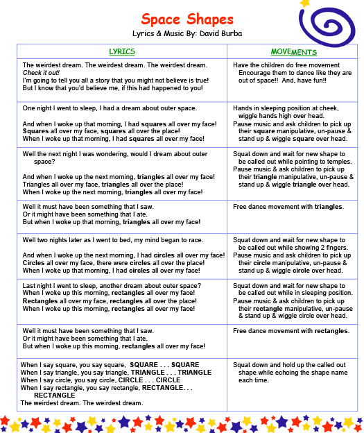 See more of our Shapes, Counting, ESL and Preschool Song Lyrics.