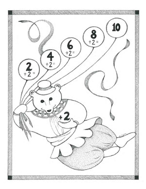 Concepts covered are counting to 12; counting by 2's, 5's and 10's; subtracting one; place value; fact families; shapes; and money. Plus a bonus track, Sleepy-Dozy, designed for a mid-day rest after the hard work of learning.